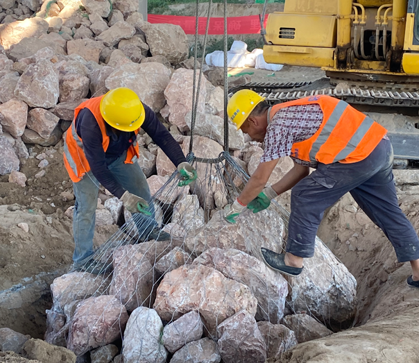 合金網(wǎng)兜又稱石籠網(wǎng)兜。石籠網(wǎng)袋是由雙絞合六角形金屬網(wǎng)編織而成的圓柱形袋狀物。在施工過程中,石籠網(wǎng)袋內(nèi)填充石料,構(gòu)成結(jié)構(gòu)牢固,透水性的建筑材料,用于河道防護(hù)等緊急預(yù)備工程。